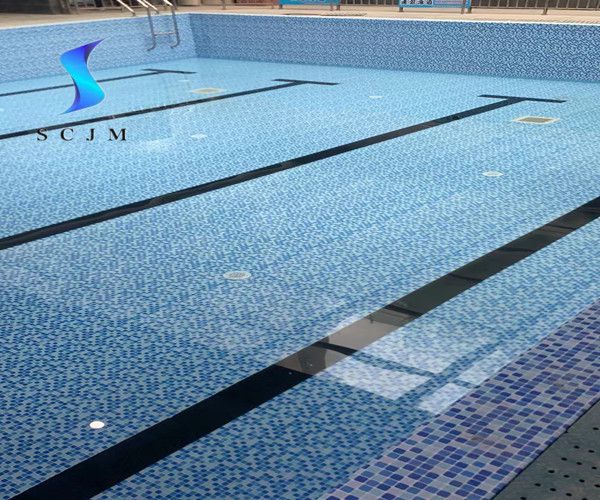 浙江省室外小區游泳池改造防水膠膜定制圖案案例